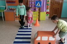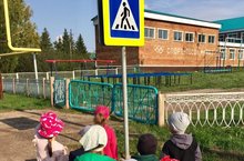 Главной целью прогулки было обучение детей правилам перехода проезжей части по пешеходному переходу, повторение назначения дорожных знаков.