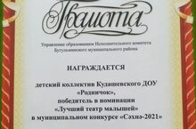 Наш детский сад принял участие в муниципальном детском театральном фестивале - конкурсе "Сайяр" и стал победителем в номинации "Лучший театр малышей!" Поздравляем! 10.01.2022
