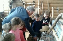 Для воспитанников и воспитателя д/с «Родничок» села Кудашево сам директор школы и руководитель музея Наил Амирович Мукминов провел экскурсию. Дети внимательно слушали. Когда сказали что можно взять понравившийся экспонат, мальчики все атаковали экспозицию « Орудия труда», а девочки побежали к колыбельке.