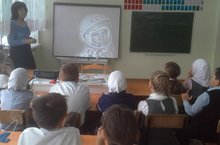 12 апрель Космонавтика көнен билгеләп үттек. 1961 нче елның 12 апрелендә, дөньяда беренче буларак, бортына кеше утырган “Восток” космик корабле җир тирәли орбитага чыгарылды. Бу кеше-очучы космонавты Юрий Алексеевич Гагарин. Бу хакта укучылар белән тәрбия сәгатьләре уздырылды.