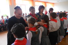 « ДУСЛЫК” дружинасының тантаналы сборында укучыларны эзтабарга, вариска алдык. Ветеран –пионерлар: Равилә апа, Нафиса Хамзә кызы, Наил Әмир улы, Халисә Кәбир кызы истәлекләр белән уртаклаштылар, варисларга галстуг тактылар һәм котладылар.“ Менә сез Татарстан Варислары Берлеге сафларына бастыгыз. Берлек таләпләрен үтәү, куелган максатка ирешү җиңел булмас. Моның өчен катлаулы сынаулар үтәргә, яңа үрләр яуларга кирәк. Монда сезгә “Варис күп белергә, көчле һәм җитез булырга омтыла” дигән кагыйдә ярдәмгә килер. Сезне варис булуыгыз белән тәбрик итәбез. Акыллы булыгыз, тырышып укыгыз, сәламәт булып үсегез, герой-пионерлар шикелле Ватанны яратыгыз.” Варислар “ Без һәрвакыт әзер!” - дип җавап бирделәр.