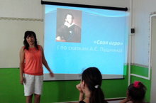 В школьном лагере труда и отдыха в этот день прошел конкурс “Своя игра” по сказкам А.С.Пушкина.