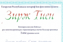 "Зирәк тиен - һәркем өчен тел белеме!" конкурсының нәтиҗәләре билгеле булды. Бигрәк тә кызларабызның уңышлары сөендерде. Район буенча 3 сыйныфлар арасында Галиева Элҗвина 2нче урында. Степанова Алисә, Хисматова Таңсылу, Имамова Диана район буенча алтынчылар арасында 1,2,3, ә Галимова Миләүшә һәм Мингалимова Эльвина сигезенчеләр арасында 1,2 урыннарны яуладылар. Котлыйбыз! Яңадан-яңа уңышлар телибез!