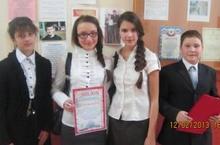 4 февраля в школе прошли меропрития, посвященные 70-летию Сталинградской битвы. Прошли классные часы: "Битва за Волгу - мы помним!" (2-4 классы) , "Хочешь мира? Помни о войне" в 5-6 классах, "Не забудем грозные года" (8-9 классы). Также организованы тематическая выставка и экскурсия в школьный музей "Наши односельчане в Сталинградской битве". Учащиеся приготовили рассказы о своих дедушках и прадедушках, воевавших в Великой Отечественной Войне.