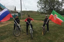 В МБОУ Кудашевской ООШ проходит акция “Символы России”, приуроченная ко Дню России. Ребята проехались на велосипедах с Государственными флагами России и Татарстана.