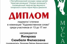 Ученица 8 класса Кудашевской ООШ Янгирова Сюмбеля, под руководством педагога Янгировой Ляйсан Фирдаусовны, стала лауреатом I степени в номинации "Художественное слово".