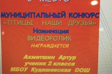 В Бугульминском муниципальном районе был организован конкурс "Птицы - наши друзья". Учащиеся МБОУ Кудашевской ООШ с удовольствием приняли участие в нескольких номинациях конкурса. Стали известны приятные итоги. В номинации "Креативная кормушка" победителями признаны Ахметшин А. - ученик 2 класса, Мулюкова М. - ученица 3 класса, Мусалимов Т. - ученик 4 класса, Ахметов Р.- ученик 6 класса. Ученик 2 класса Ахметшин А. занял третье место в конкурсе видеороликов "Поможем птицам перезимовать". / Бөгелмә муниципаль районында "Кошлар - безнең дусларыбыз" исемле конкурс оештырылды. Кодаш төп гомуми белем бирү мәктәбе укучылары конкурсның берничә номинациясендә бик теләп катнаштылар. Ниһаятҗ, күңелле нәтиҗәләр билгеле булды. "Креатив җимлек" номинациясендә 2 сыйныф укучысы Әхмәтшин А., 3 сыйныф укучысы Мөлекова М., 4 сыйныф укучысы Мөсалимов Т., 6 сыйныф укучысы Әхмәтов Р. җиңүчеләр дип табылды. 2 нче сыйныф укучысы Әхмәтшин А. "Кошларга кышларга булышыйк" дигән видеороликлар конкурсында өченче урынны алды.