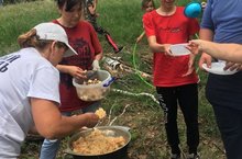 Учащиеся МБОУ Кудашевской ООШ, независимо от возраста, очень любят походы в лес. Поход укрепляет здоровье, тренирует организм, развивает выносливость, ловкость, силу, воспитывает волевые качества, бережное отношение к природе, к родному краю. Поход дает возможность видеть и ощущать природу, расширяет кругозор, усиливает интерес к знаниям , открытиям , развивает любознательность. Поэтому в Кудашевской школе стали традиционными походы на природу в начале и в конце учебного года. Вот и в этом году 8 июня учащиеся 1-9 классов вместе с классными руководителями отправились в летний поход на природу. Наряду с традиционными трудовым десантом по очистке леса, спортивными играми под руководством Янгировой Л.Ф., в этот раз поход запомнился угощением вкуснейшим пловом, приготовленным поваром Степановой Ф.Д. и учителем русского языка Мияссаровой Н.М. / Кодаш төп гомуми белем бирү мәктәбе укучылары, нинди яшьтә булуларына карамастан, урманга походка баруны бик тә яраталар. Поход сәламәтлекне ныгыта, чыдамлыкны, җитезлекне, көчне үстерә, ихтыяри сыйфатларны, табигатькә, туган якка сак караш тәрбияли. Поход табигатьне күрергә һәм тоярга мөмкинлек бирә, күзаллауларны киңәйтә, белем , ачышлар белән кызыксынуны көчәйтә, кызыксынучанлыкны үстерә. Шуңа күрә Кодаш мәктәбендә уку елы башында һәм ахырында табигатькә походка бару гадәти күренешкә әверелде. Быел да 8 июнь көнне 1-9 нчы сыйныф укучылары сыйныф җитәкчеләре белән берлектә табигатькә сәяхәт ясадылар. Быелгы поход традициягә әйләнгән урман чистарту, спорт уеннары оештыру белән беррәттән, повар Степанова Ф.Д. һәм рус теле укытучысы Мияссарова Н. М. җитәкчелегендә учакта әзерләнгән тәмле пылау ашау белән дә истә калды.