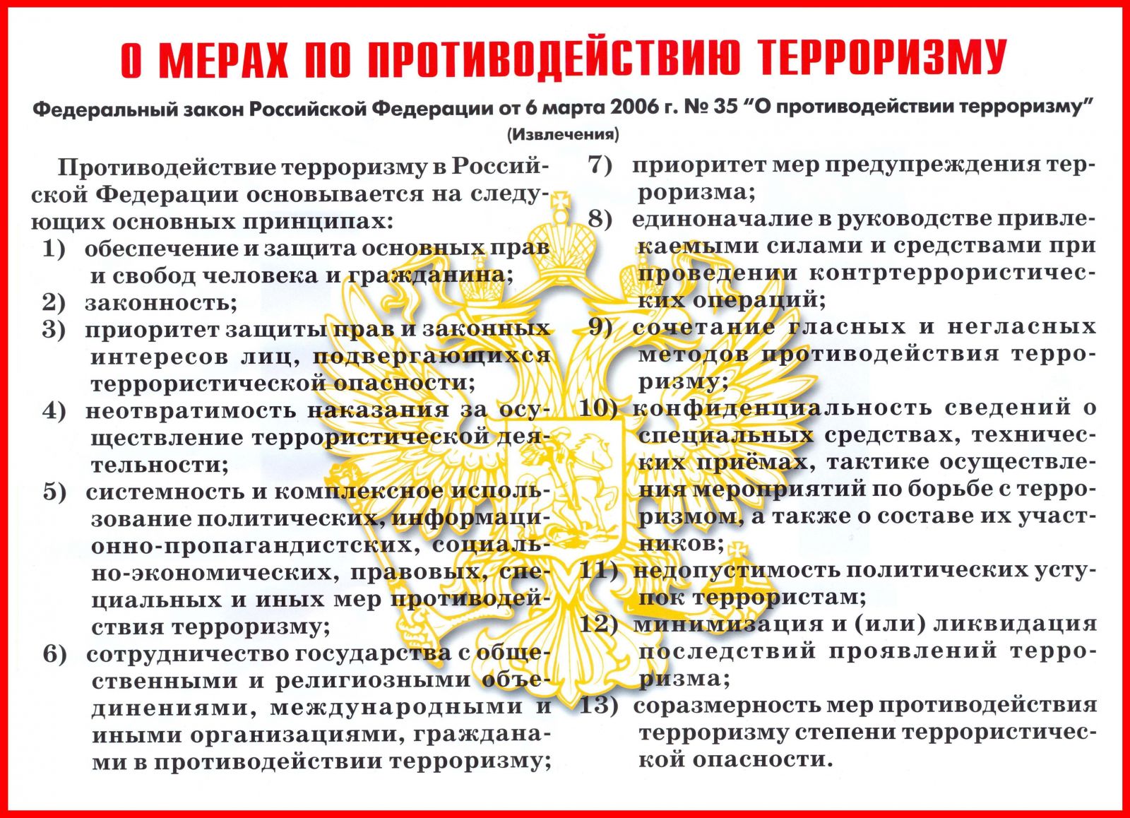 ФЕДЕРАЛЬНЫЙ ЗАКОН О ПРОТИВОДЕЙСТВИИ ТЕРРОРИЗМУ