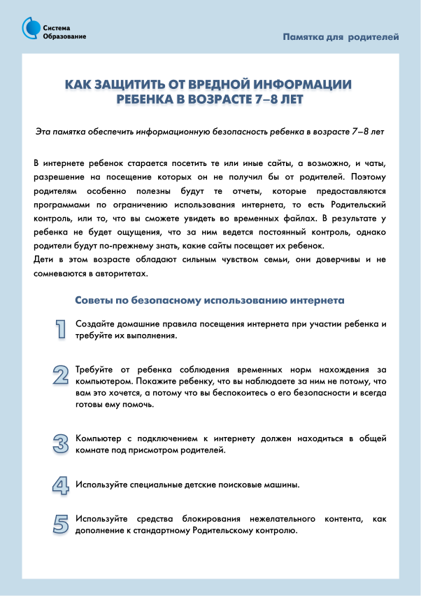 - Как защитить от вредной информации ребенка в возрасте 7-8 лет (вторая страница)