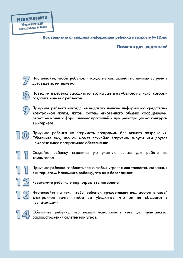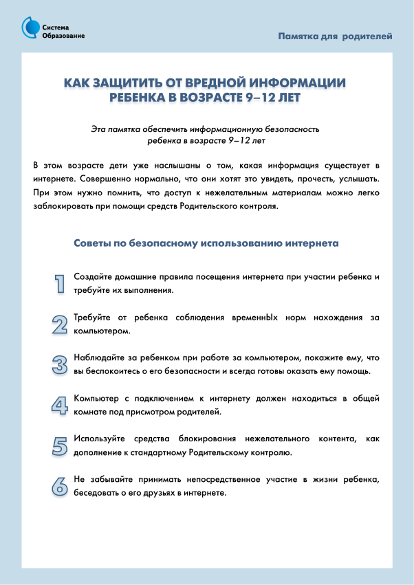 - Как защитить от вредной информации ребенка в возрасте 9-12 лет (вторая страница)