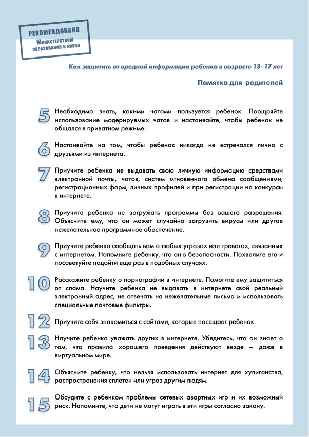 - Как защитить от вредной информации ребенка в возрасте 13-17 лет (вторая страница)