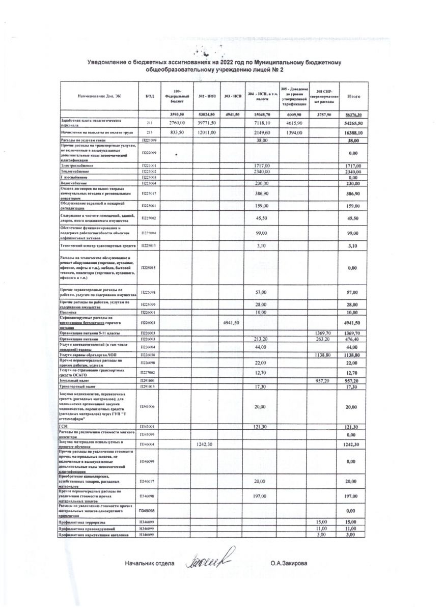 - Уведомление о бюджетных ассигнованиях на 2022 год