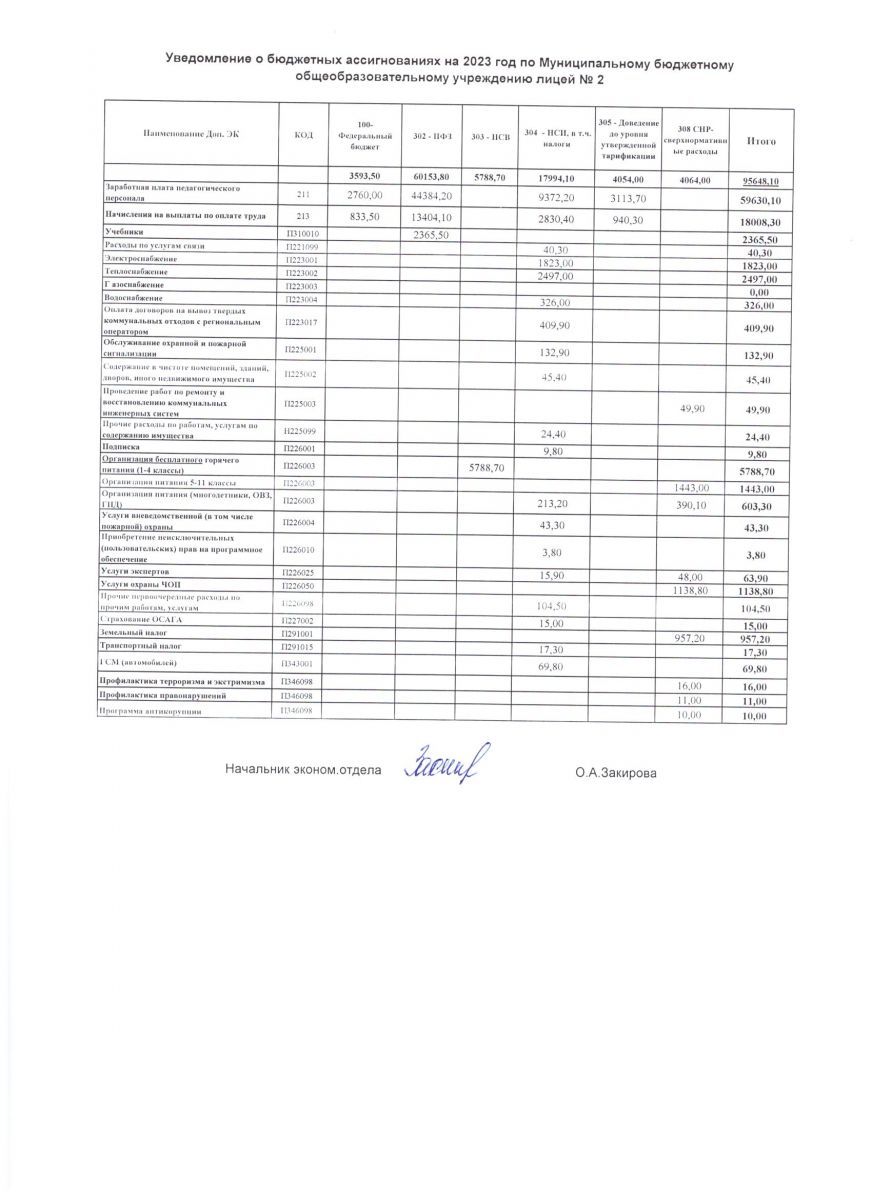 - Уведомление о бюджетных ассигнованиях на 2023 год