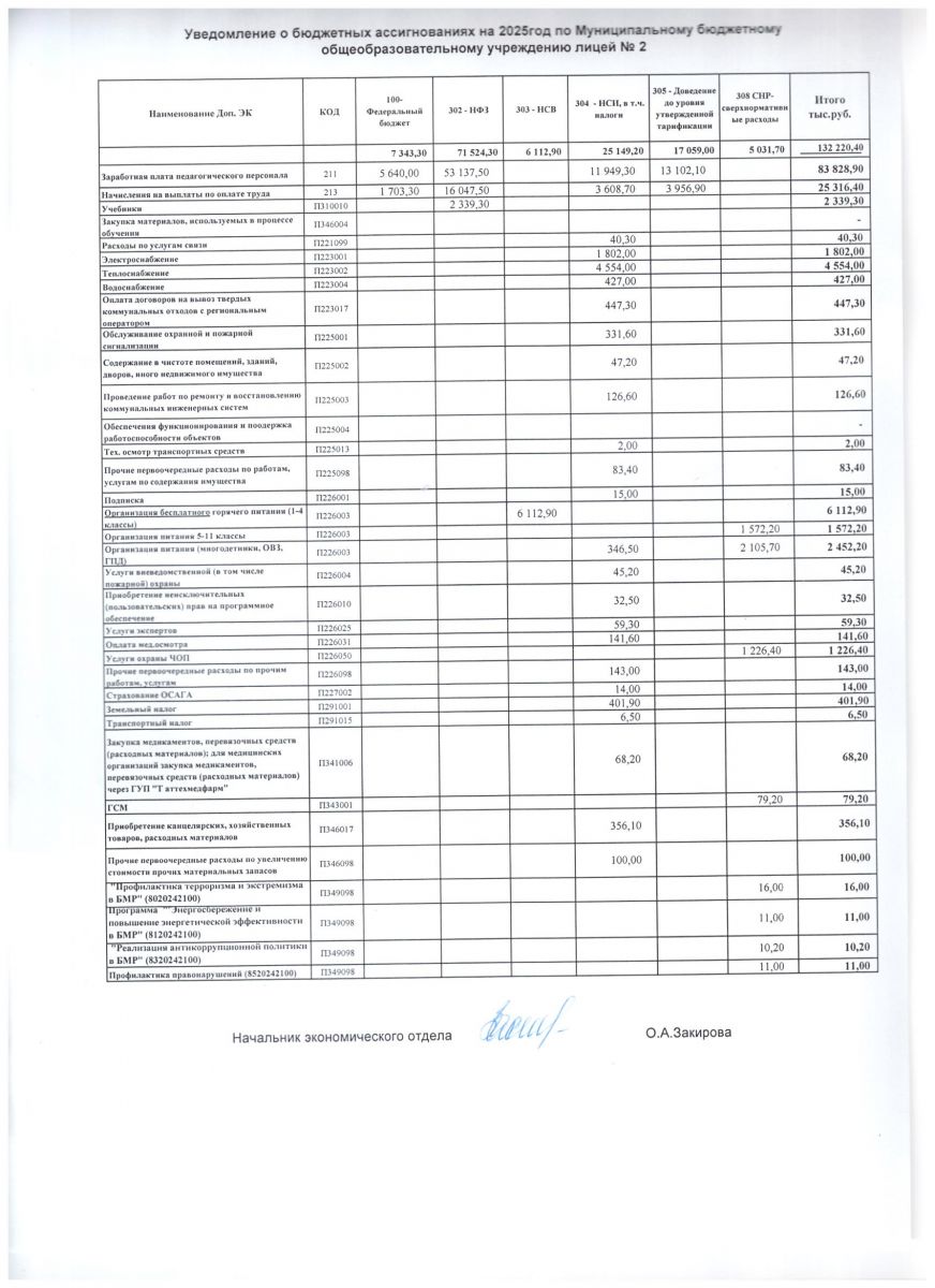 - Уведомление о бюджетных ассигнованиях на 2025 год