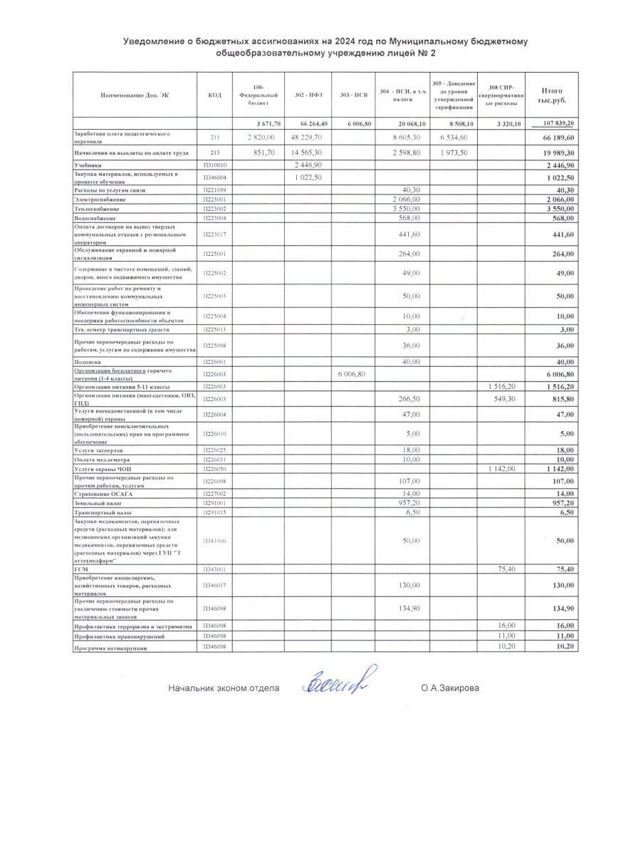 - Уведомление о бюджетных ассигнованиях на 2024 год
