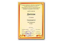 Поздравляем Азата Бадртдинова, ученика 6 класса лицея №2 г.Бугульмы, с дипломом III степени в математической интернет-олипиаде "Осень 2012" 27.12.2012