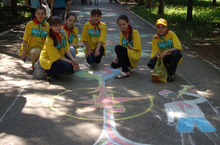 19 мая во Дворце школьников прошел муниципальный конкурс поздравительных открыток «Взвейтесь кострами!», посвященный 90-летию пионерской организации. В конкурсе принимали участие 4-5 классы школ города. Так как рисовать цветным мелком на асфальте любят все ребята без исключения, команд было много. Сначала ветераны рассказали ребятам о пионерском движении. Затем команды в составе 7 человек выбрали себе участок асфальта 2x3 метра, на котором 30 минут рисовали свои открытки. И, наконец, церемония награждения. Наши лицеисты поработали на славу, за что и были награждены дипломом за 2 место!