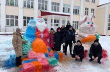 Зимой наш школьный двор оживает, преображается. На дворе появляются снежные фигуры. Создание снежных фигур это особенный, волшебный процесс. За пару дней педагоги и учащиеся 10-го класса преобразили территорию школы. Теперь школьный двор превратиллся в сннежное царство, в котором поселились кролик – символ предстоящего Нового года, Дед мороз и Снегурочка.