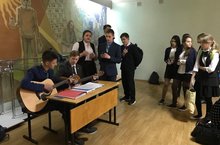 Сегодня в лицее прошла акция, посвящённая памяти известного певца Виктора Цоя, инициаторами которой стал Совет старшеклассников. Ребята устроили импровизированный концерт, на котором под гитару исполнялись песни В.Цоя. Солистами выступили учащиеся 10В Дихтяренко Александр и 10А Лысов Илья.