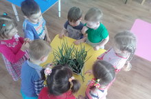 В младшей группе «Солнечные зайчики» воспитатели совместно с детьми провели эксперимент – наблюдение за ростом и развитием репчатого лука. Затем, в профилактических целях, выращенный своими руками лук детям добавляли в пищу.