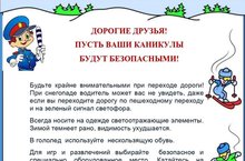 Памятка родителям "Безопасность детей во время зимних каникул"