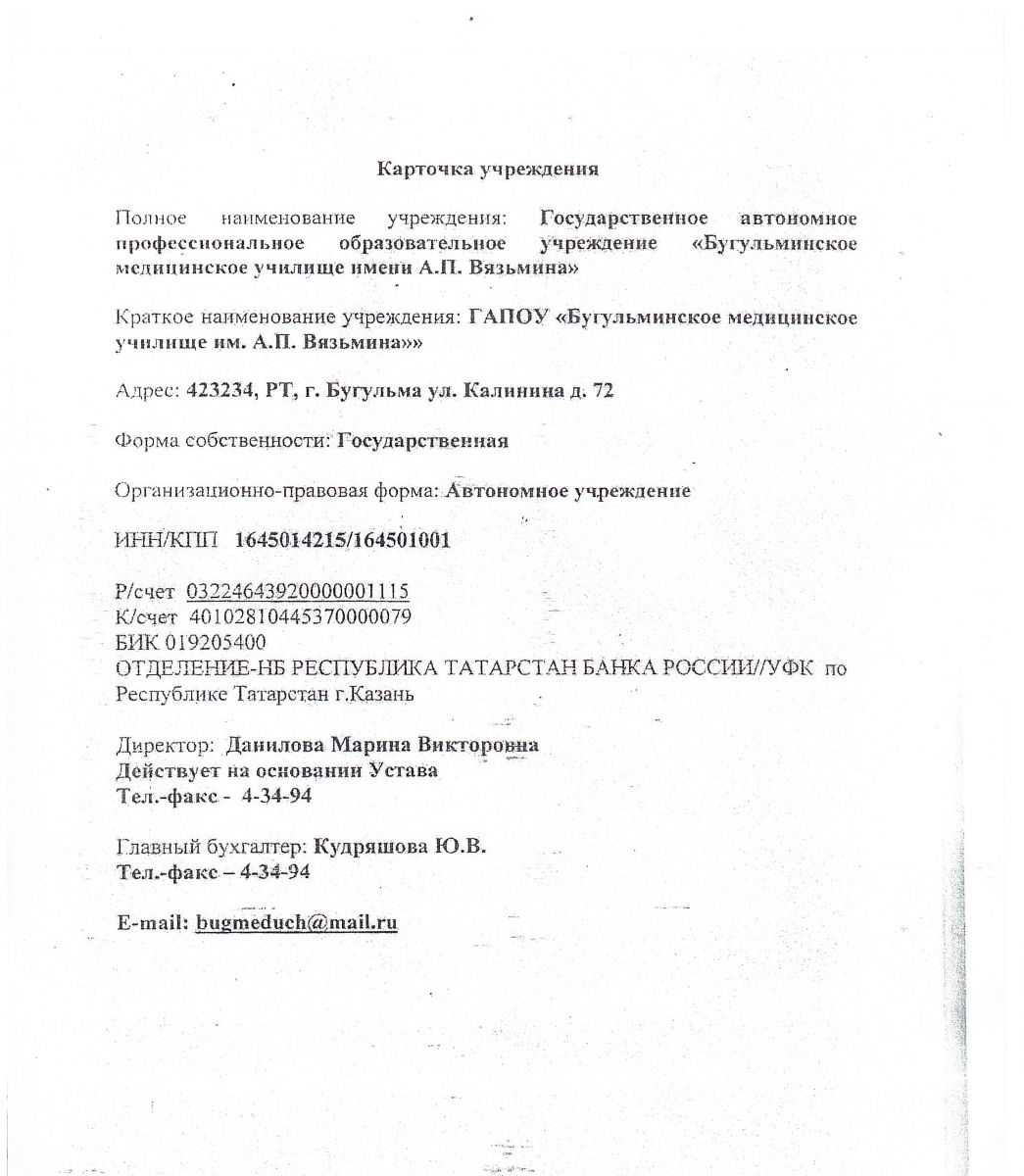 | Короткое название: | ГАПОУ «Бугульминский медицинский колледж имени А.П. Вязьмина» |