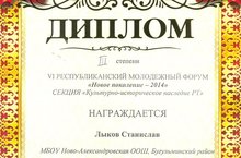 Ученик 9 класса Лыков Станислав - Призер Республиканского Форума