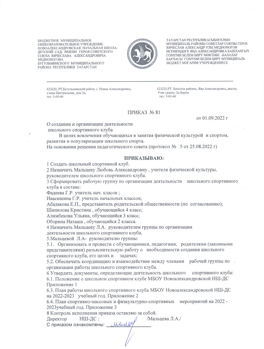 Адрес: 423220, Республика Татарстан, Бугульминский район, село Новая Александровка, улица Центральная, 2 А/ 423220, Татарстан Республикасы, Бөгелмә районы, Яңа Александровка авылы, Үзәк урамы, 2А