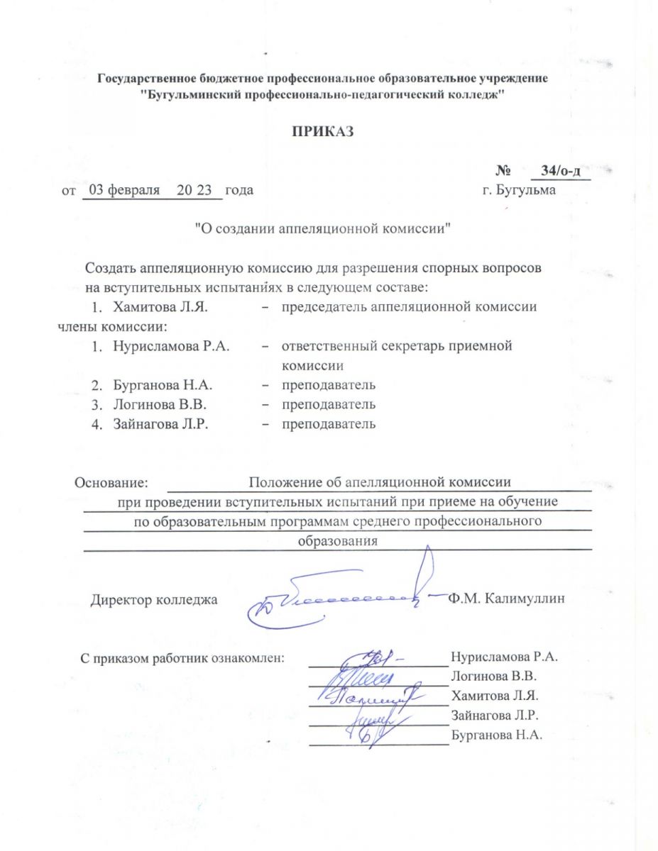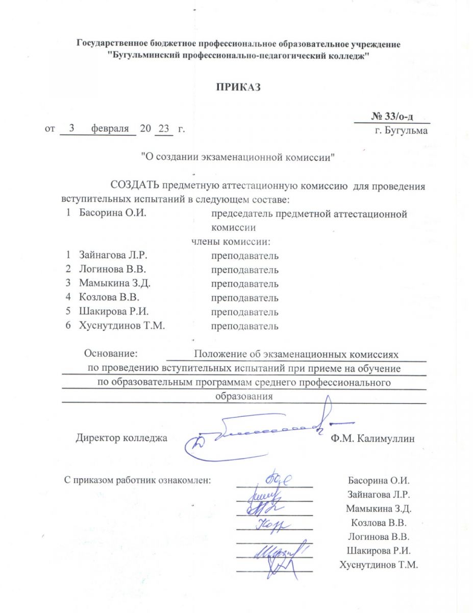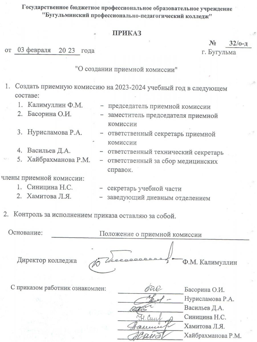 Приказ об утверждении правил приема в ГБПОУ "БППК" на 2023-2024 учебные годы