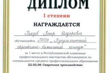 Всероссийской олимпиады профессионального мастерства обучающихся среднего профессионального образования по специальности 22.02.06 «Сварочное производство» 08.05.2019