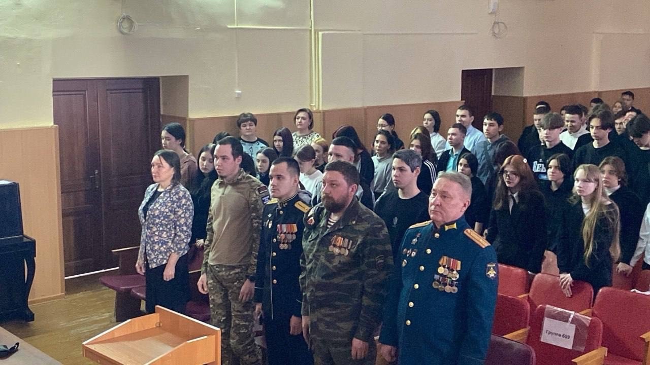 В эти дни мы вспоминаем не только тех, кто сражался в Афганистане, но и ребят, которые отдали свои жизни в «горячих точках» нашей страны. В рамках Года защитника Отечества и этой памятной даты в колледже состоялась литературно-музыкальная встреча под названием «Живая память". В зале колледжа собрались гости — ветеран афганской войны Прошин Леонид Леонидович и участник боевых действий Иванов Илья Иванович, участники Специальной военной операции, студенты колледжа Хабипов Ильсур и Абдуллин Ренат ,а также молодое поколение — студенты .