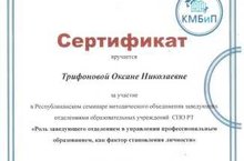 26 апреля 2018 года в г. Казань состоялся республиканский семинар методического объединения заведующих отделениями профессиональных образовательных организаций на тему «Роль заведующего отделением в управлении профессиональным образованием, как фактор становления личности».