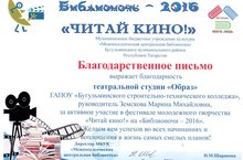 23 апреля 2016 года 22 студента колледжа приняли участие в первой Всемирной онлайн – контрольной по татарскому языку и литературе «И туган тел, и матур тел», приуроченной к 130-летию со дня рождения Габдуллы Тукая. Ребята показали хорошие результаты и были награждены Сертификатами участника.