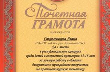1 место в Республиканском конкурсе на противопожарную тематику 05.05.2016