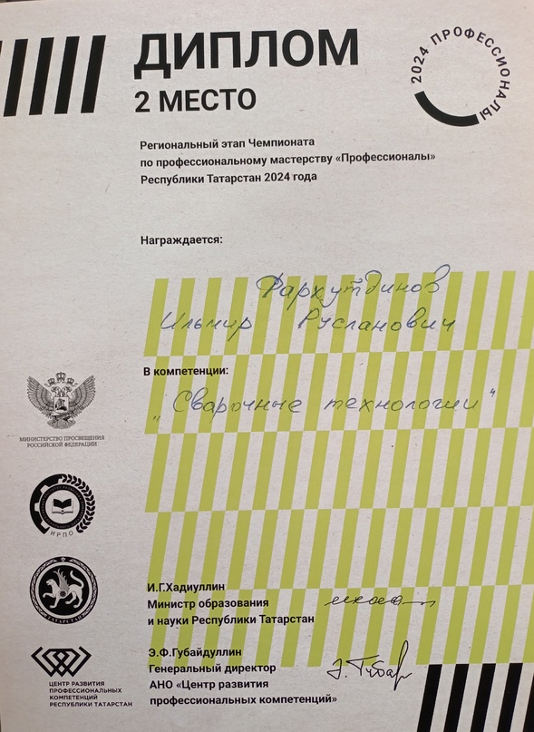 Студент нашего колледжа Ильмир Фархутдинов занял второе место. Эксперт-наставник Смирнов Александр Васильевич.