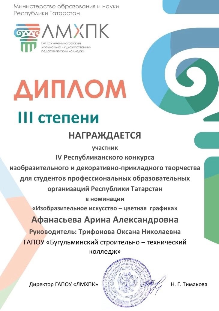 Поздравляем Нурисламову Аделину и Афанасьеву Арину с победой в IV Республиканском конкурсе изобразительного и декоративно-прикладного творчества