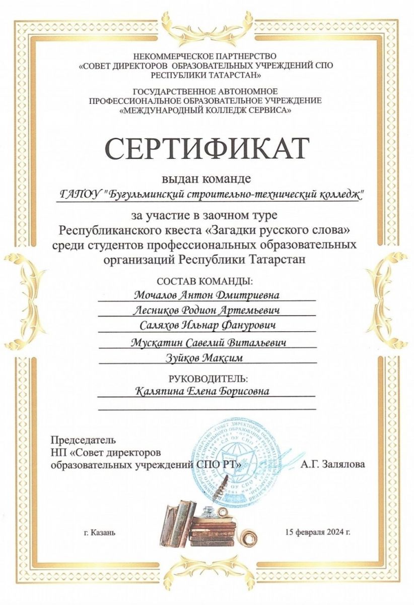 Состоялся заочный тур Республиканского квеста «Загадки русского слова» среди студентов профессиональных образовательных организаций Республики Татарстан.