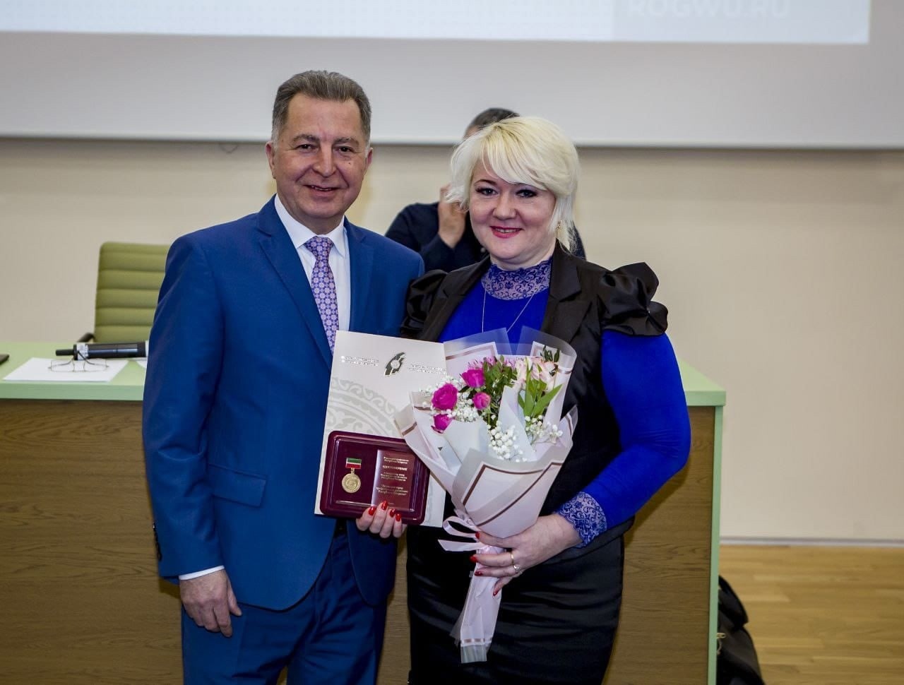 Благодарственные письма за огромный вклад в развитие компетенцией от ГАПОУ "Нижнекамский политехнический колледж им Е. Н. Королева", министра образования и науки Республики Татарстан И. Г. Хадиуллина и генерального директора АНО "Центр развития профессиональных компетенцией" Э. Ф. Губайдуллина были вручены директору ГАПОУ "Бугульминский строительно-технический колледж" Маслову Александру Сергеевичу и преподавателю Золотухиной Ларисе Николаевне