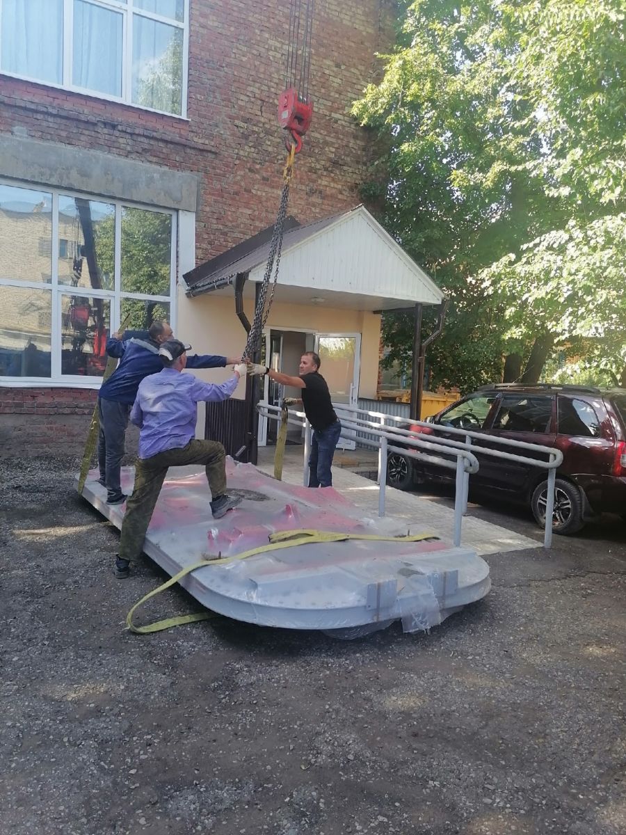 Сегодня выполнены работы по транспортировке стапеля в помещение мастерской.