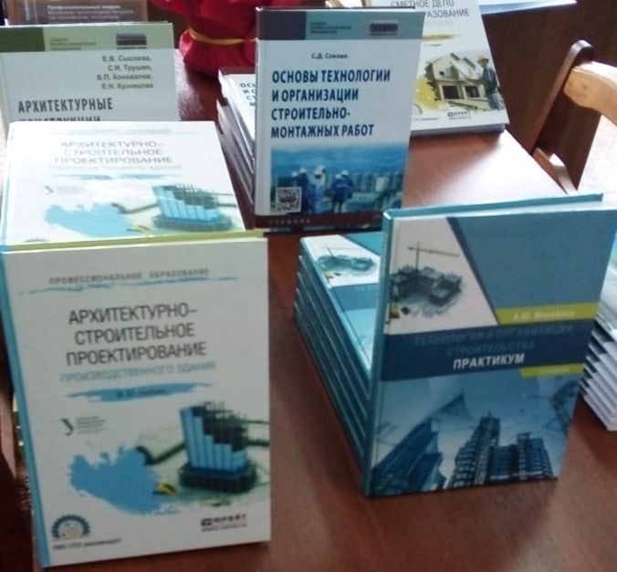 Библиотека Бугульминского строительно-технического колледжа ежегодно пополняется новой учебной и справочной литературой. Студентам специальности "Строительство и эксплуатация зданий и сооружений" при изучении профессиональных модулей, написании курсовых проектов, подготовки выпускных квалификационных работ библиотека может предложить, в частности, следующие учебники: Русланова Т.Г. Организация технологических процессов при строительстве, эксплуатации и реконструкции строительных объектов, Синянский И.А. Типология зданий, Кукота А.В. Сметное дело и ценообразование в строительстве. Вся учебная литература соответствует актуальным требованиям Федерального государственного образовательного стандарта СПО и профессиональным требованиям.