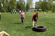 Уроки физкультуры проводятся на открытом стадионе широкого профиля спорткомплекса "Факел" с использованием нетрадиционных видов силовой подготовки.