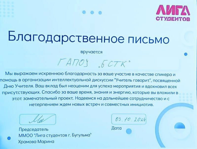 Государственное автономное профессиональное образовательное учреждение "Бугульминский строительно-технический колледж" / Дәүләт автоном һөнәри белем бирү учреждениясе “Бөгелмә төзелеш-техник көллияте”