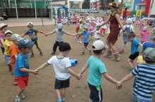 12 августа воспитанники старшего возраста на наобычном автобусе совершили веселое путешествие в страну "Веселую" - страну песен, плясок, игр и загадок. По дороге исполнили знакомые танцы, любимые песни. Встретили Бабушку-загадушку с корзинкой в руках, где были спрятаны разные загадки и, конечно же, угощение. Поиграли в веселые игры «Гонка мячей», «Повяжи платок на колпак», «Бой петухов», «С бубном» где проявили сноровку, ловкость, быстроту и азарт победителя.