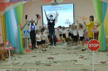 Под таким названием 9 сентября в нашем детском саду прошло итоговое мероприятие (в рамках реализации плана мероприятий "Месячника безопасности детей")по ПДД. Участниками праздника стали самые взрослые воспитанники детского сада (старшая и подготовительная группы). Они на отлично показали свои знания правил дорожного движения. Не остались без внимания и младшие дошкольники. На мероприятии они исполнили песни о дорожных знаках, прочитали стихи. В конце все воспитанники вместе с героями исполнили танец.