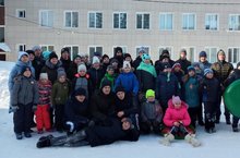 Ребят под весёлую музыку встречали герои праздника: ведущая Агафия, Зима, Емеля, Весна, Скоморохи. Дети вместе с педагогами и воспитателями пели, танцевали, состязались в силе и ловкости.