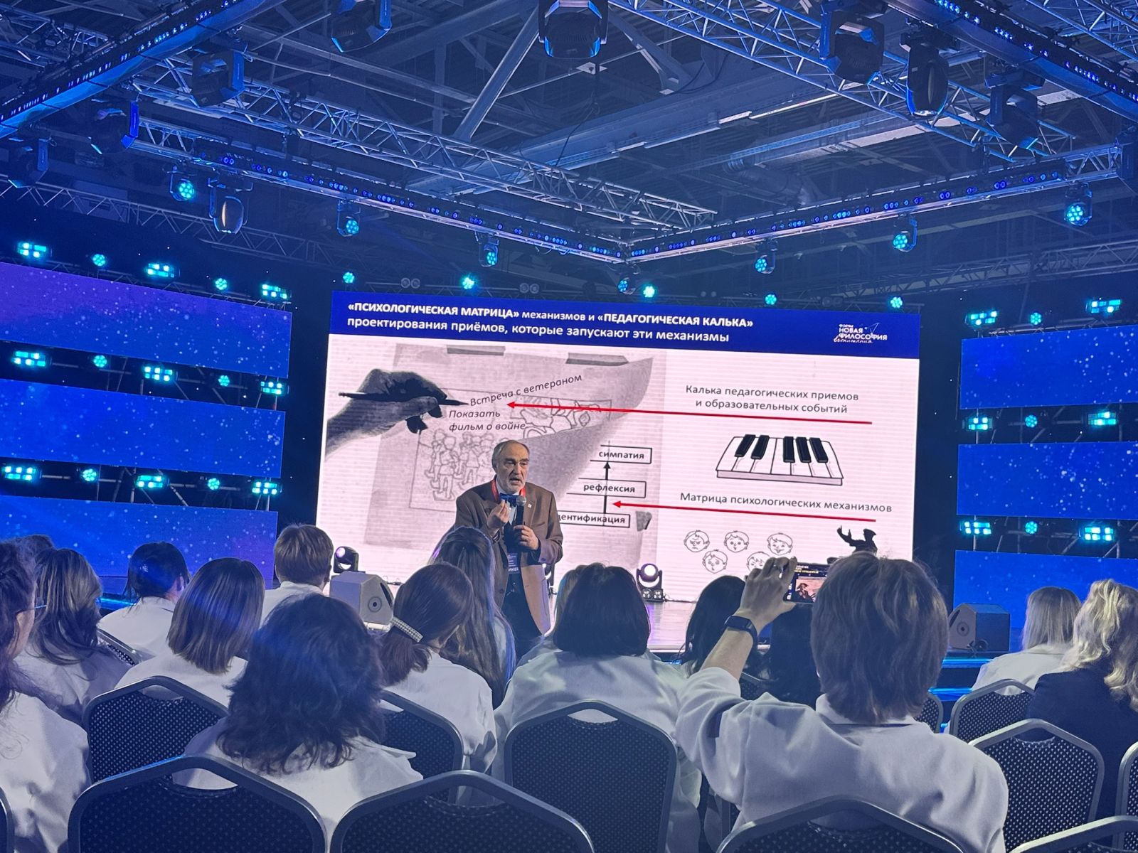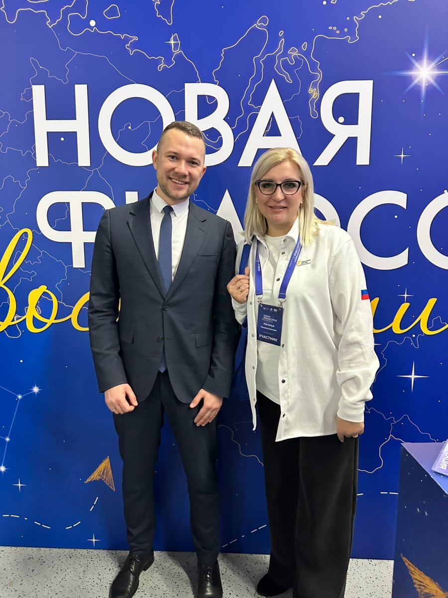 Совсем недавно советник директора по воспитанию Низамутдинова Наталья Викторовна вернулась из Москвы, посетив форум «Новая философия воспитания». В Москве, на площадке павильона №57 ВДНХ «Моя Россия-моя история» состоялось открытие Всероссийского форума «Новая философия воспитания». Он объединил более 1500 участников, охватил 89 регионов РФ. Впервые в нем принял участие и город Байконур. За период заявочной кампании представлено более 9000 работ педагогов со всей России. Участники обменивались практиками, получили обратную связь от экспертов в сфере образования, обзавелись новыми знакомствами и усовершенствовали свои навыки. Функционировала телестудия, куда были приглашены: телеведущие, общественные деятели и известные лекторы. Оба дня «Новой философии воспитания» были яркими и насыщенными, а главное невероятно звёздными: форум открыли ведущие Первого канала: Тимур Соловьев и Светлана Зейналова. Приветственное слово было передано Кудряшову Александру Сергеевичу, директору ФГБУ «Росдетцентр». Спикерами выступил: Витольд Альбертович Ясвин, заведующий кафедрой педагогической культуры и управления в образовании МГИМО МИД России, с темой: «Воспитание как формирование отношений личности»; Родина Ольга Александровна, эксперт «Росмолодёжь» с темой выступления: «Грантовые конкурсы как вектор роста педагога»; Елена Богданова, кандидат педагогических наук, директор «Центр опережающего профессионального развития», г. Новосибирск, с темой «Родительское сообщество: партнеры, попутчики, почтальоны»; Илья Изяславич Авербух, российский фигурист, основатель школы зимних видов спорта «НаСледие», хореограф в фигурном катании, с темой: «Культура успеха или как воспитать у детей стремление к победе и умение принимать поражения?»; Булатов Артемий Анатольевич, руководитель структурного подразделения «Медиацентр Pro46» c темой: «Медиацентр. От идеи к результату». Кравцов Сергей Сергеевич, Министр просвещения Российской Федерации, дал напутствия на дальнейшую работу. Особую роль советников по воспитанию отметил первый заместитель главы администрации президента Сергей Кириенко: «Советники по воспитанию — сегодня это уже больше, чем просто воспитатели, работающие с детьми. Это, в общем, серьезные управленцы, потому что ваша задача — скоординировать, вовлечь всех. Ну потому что это задача всех, воспитание подрастающего поколения — это общая задача. Но главный организатор — это, конечно, советник по воспитанию». Кульминацией форума было выступление группы «Новые самоцветы». Продолжаем формировать новую философию воспитания!