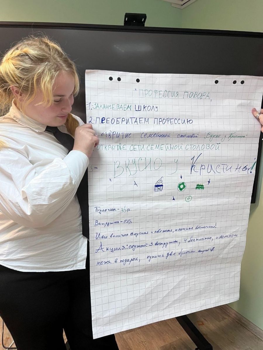 Сегодня в нашей школе прошел настоящий «круглый стол» для старшеклассников, который оказался не только информативным, но и вдохновляющим! Это мероприятие было приурочено к Декаде инвалидов, что придало ему особое значение и важность. Кто был на встрече: Хайрутдинов Александр Валерьевич – начальник отдела экономики Исполкома Бугульминского района Минязева Наталья Юрьевна – начальник отдела оказания услуг в сфере занятости населения. Кудрявцева Анна Валерьевна – начальник отдела оказания услуг в сфере занятости работодателям. Директор школы, который не только поддержал мероприятие, но и активно участвовал в обсуждении. О чем говорили: Мы обсуждали возможности трудоустройства для молодежи, востребованные профессии и, конечно же, социальные контракты, которые открывают новые перспективы для тех, кто хочет развивать собственные проекты и хобби. Что было на практике: Ребята разделились на команды и разработали бизнес-планы для своих хобби, которые могли бы стать основой для соцконтракта. Каждый проект был представлен на защите, где эксперты дали свои рекомендации и оценили идеи. Идей оказалось море, и каждая — уникальная! Результат: Все бизнес-планы получили высокие оценки, а школьники зарядились уверенностью и вдохновением! Вдохновляйтесь и вы! Такие мероприятия — отличный шанс для нашьих ребят не только узнать больше о реальном мире труда, но и начать воплощать свои идеи в жизнь. Мероприятие организовано педагогом-организатором Емельяновой О. С.