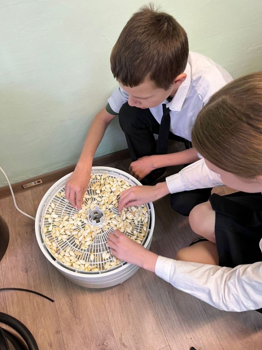 Участники движения первых и волонтеры отряда «Зеленый путь" поздравляют с Днем синички! 12 ноября отмечается День синички — праздник, посвященный этим маленьким и активным птицам, которые остаются с нами даже в холодное время года. В честь этого события участники движения первых и волонтеры отряда «Зеленый путь» провели интересный эксперимент по заготовке семечек для кормушек. Для проекта ребята взяли тыкву, выращенную на пришкольном огороде, и извлекли из нее семечки. Чтобы подготовить их к сушке, семечки тщательно вымыли и разделили для сушки двумя способами: естественным, на подоконнике, и с помощью специальной сушилки. Выяснилось, что сушилка справляется всего за 3 часа, тогда как естественная сушка на подоконнике занимает целых 4 дня. Такой опыт помог ребятам понять, какой метод лучше использовать для быстрой подготовки корма для птиц в холодный сезон. Когда семечки были готовы, школьники вместе с волонтерами разложили их по кормушкам, расположенным на территории школы и в селе. На внеклассном мероприятии они рассказали третьеклассникам о своем опыте, Дне синички и о важности заботы о птицах зимой.