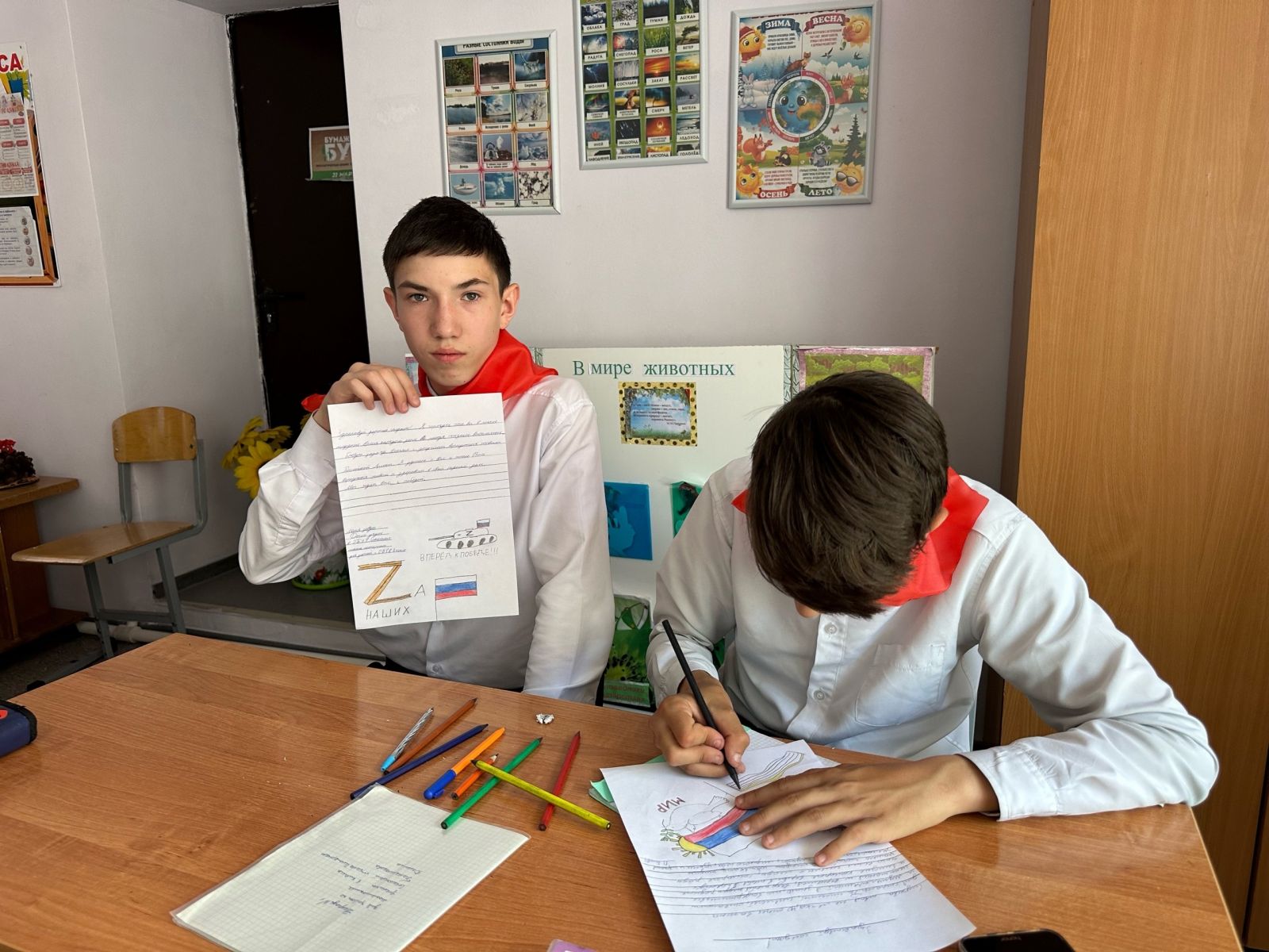 Занятие организовали советник директора по воспитанию, Низамутдинова Н.В., учитель Файрушина О.Н. Они рассказали ребятам кто такие пионеры, и как возникла и чем занималась пионерская организация. Пионер — надёжный товарищ, уважает старших, заботится о младших, всегда поступает по совести и чести! Пионер - предан родине, Пионер - чтит память павших героев и готовится стать защитником родины. Активисты школы - интерната написали письма на фронт в поддержку наших ребят, которые в данный момент в зоне СВО.